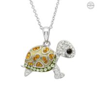Sterling Silver Turtle Pendant Encrusted with Amber Green White Swarovski Crystals